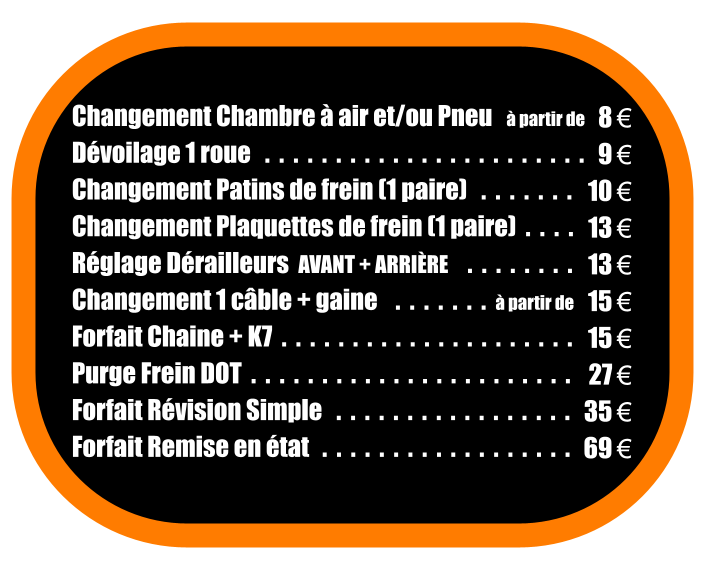 tarifs main-d’œuvre uniquement, hors prix des pièces détachées